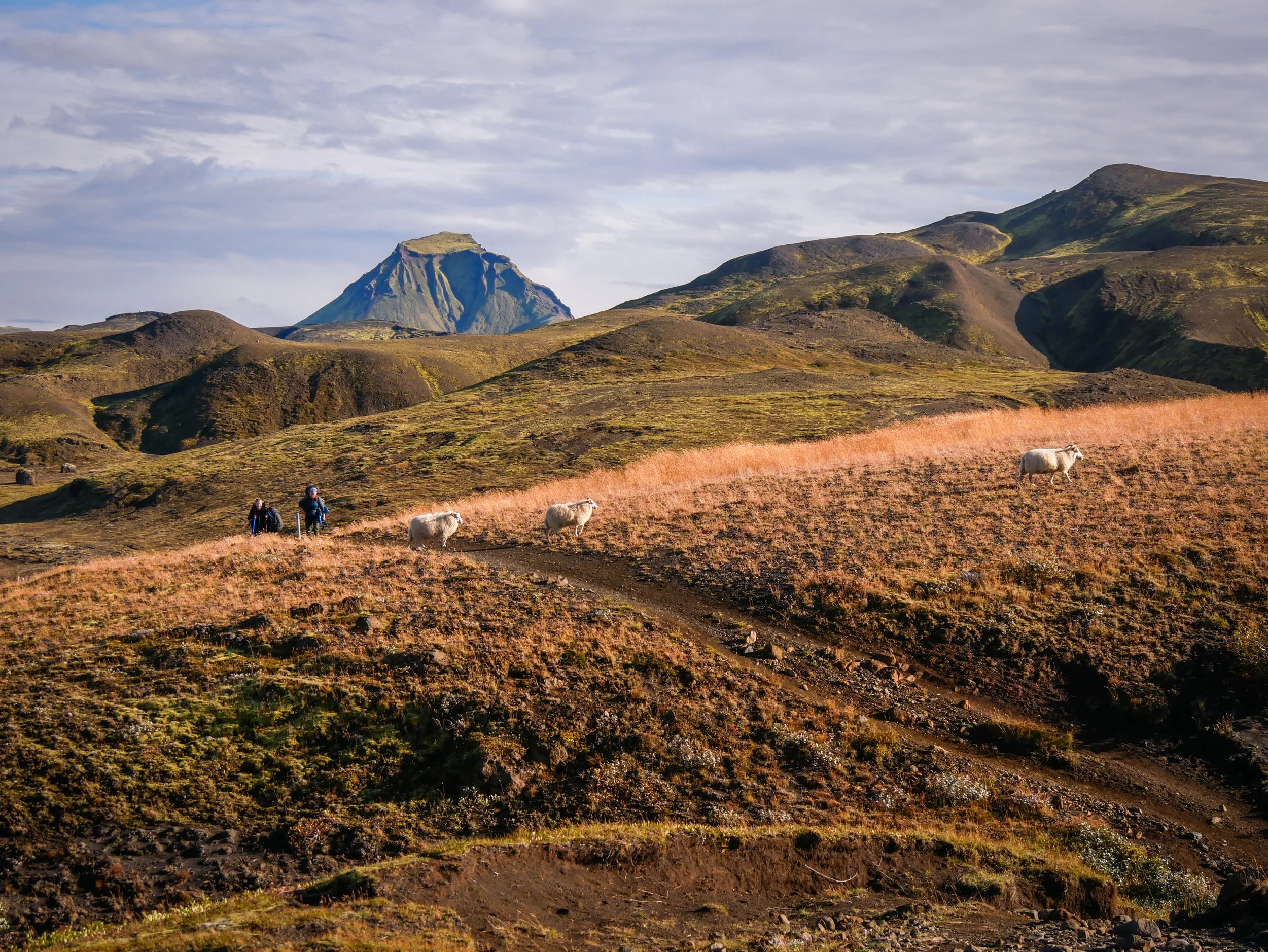 Day Three was the day for some serious river crossings. But the highlight at the half-way mark of this adventure and in the middle of absolutely nowhere was having tea and cake just 4 km down the road at the Hvanngil hut, baked by the warden’s wife. After roughing it for a few days, there was nothing more civilized (and appreciated) than having warm tea and cake. I grabbed a bag of sliced dessert loaf, with pieces for later on the trail.